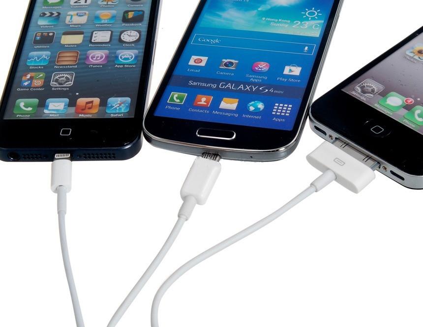 - USB connector to Apple Lightning connector, dock connector and micro-USB connector.